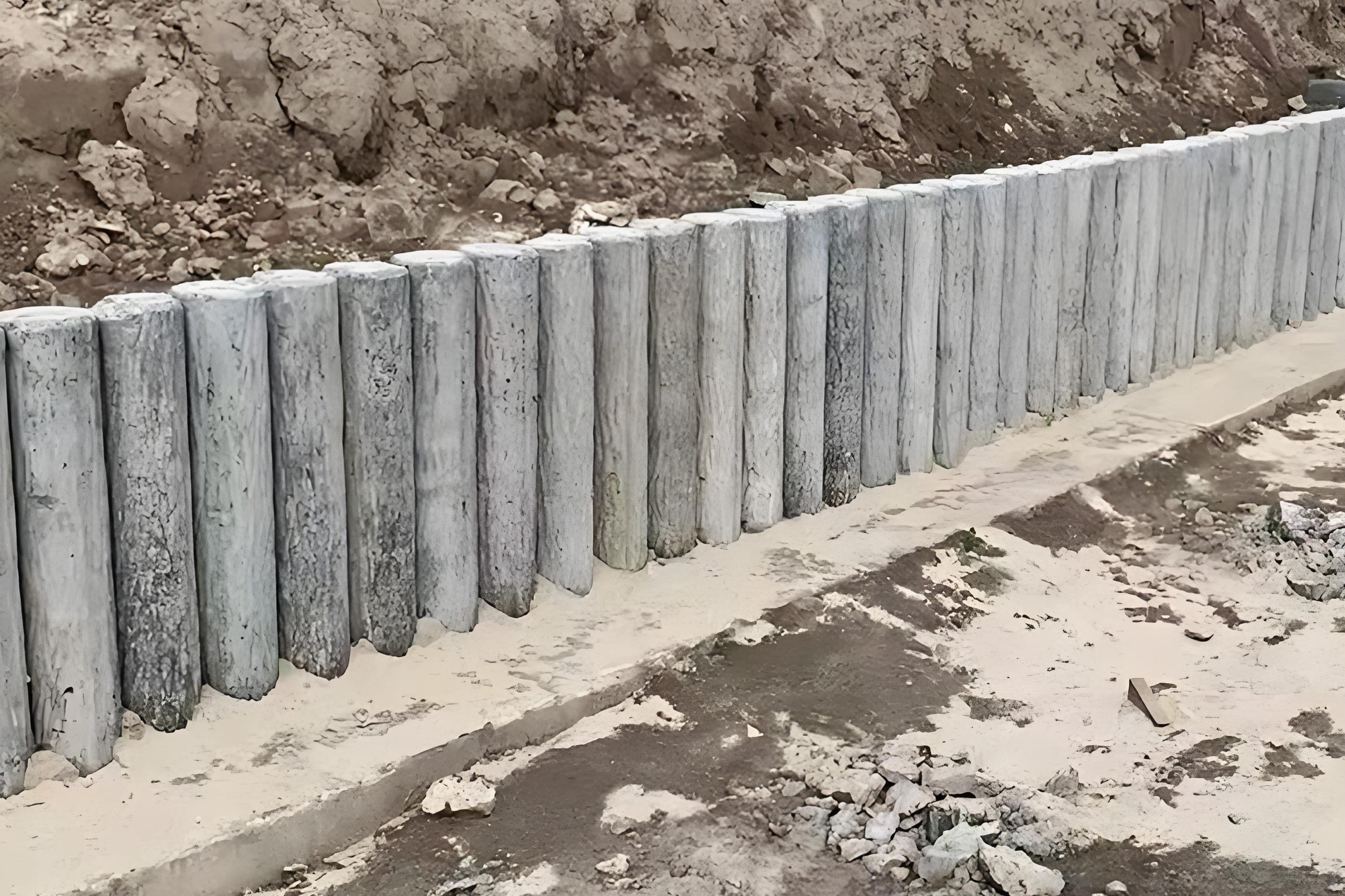 - 水泥樁批發廠家泓樺錦嘉-水泥仿木樁適合用于河道護坡嗎?