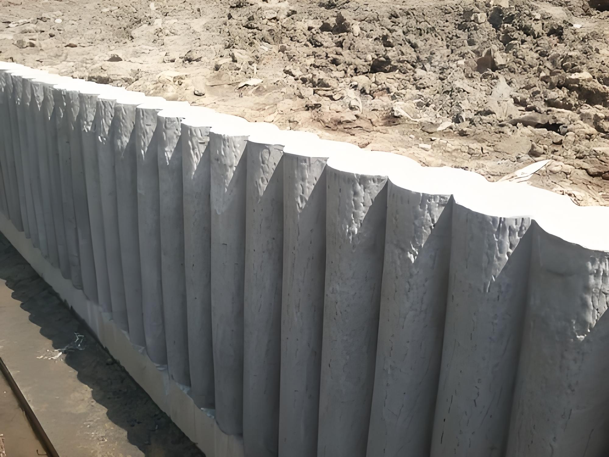 - 長度:6-8 米。寬河道水深常達 3-4 米,仿木樁需要埋進土層 2-2.5 米,露出水面 1.5-2 米,6-8 米的長度能深入硬土層,避免汛期被洪水沖倒;