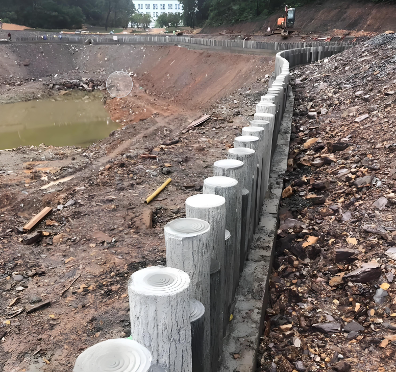 河道邊的土大多是淤泥、軟土,有的還夾雜石頭、樹根。施工前一定要用洛陽鏟或探測(cè)儀查土質(zhì),比如淤泥層有多厚、下面有沒有硬土層。要是淤泥太厚,直接打樁容易 “打空”,樁會(huì)往下陷,這時(shí)候就得先清淤,或者用碎石墊一層 “打底”;要是有石頭、樹根,不清理掉會(huì)把樁頂裂,還會(huì)讓樁打不直。水泥仿木樁施工隊(duì)泓樺錦嘉去年在蘇州某河道施工,清出了不少樹根,要是沒清,至少一半的樁得廢。3. 算好樁的規(guī)格:別用 “小身板” 扛大壓力